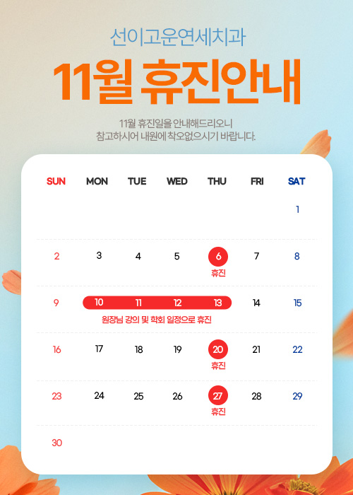 ¡Ø ÀÏ¿äÀÏ ¹× °øÈÞÀÏÀº ÈÞÁøÀÔ´Ï´Ù.